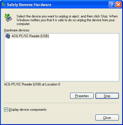 - Double click on  the USB hardware list icon (found in bottom right) , you will see the with an unknown device or ACG PC/SC , you will see the with an unknown device or ACG PC/SC